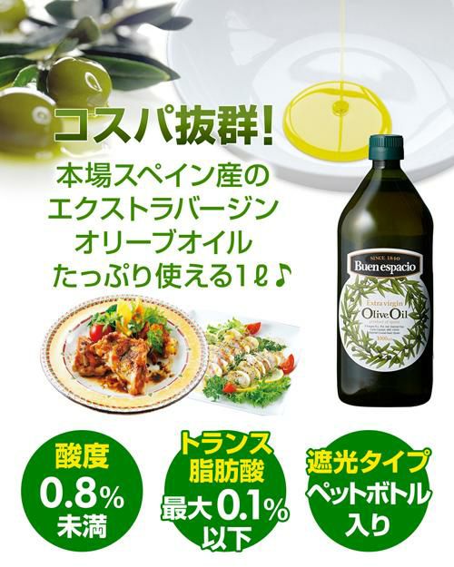 他の画像を見る 【累計販売数20万本突破】スペイン産 オリーブオイル エキストラバージン 1L×3本 EX EXVオリーブオイル 1l 1000ml ペットボトル ブエンエスパシオ olive oil 長S ¥ 5,700 税込 お気に入りに登録する