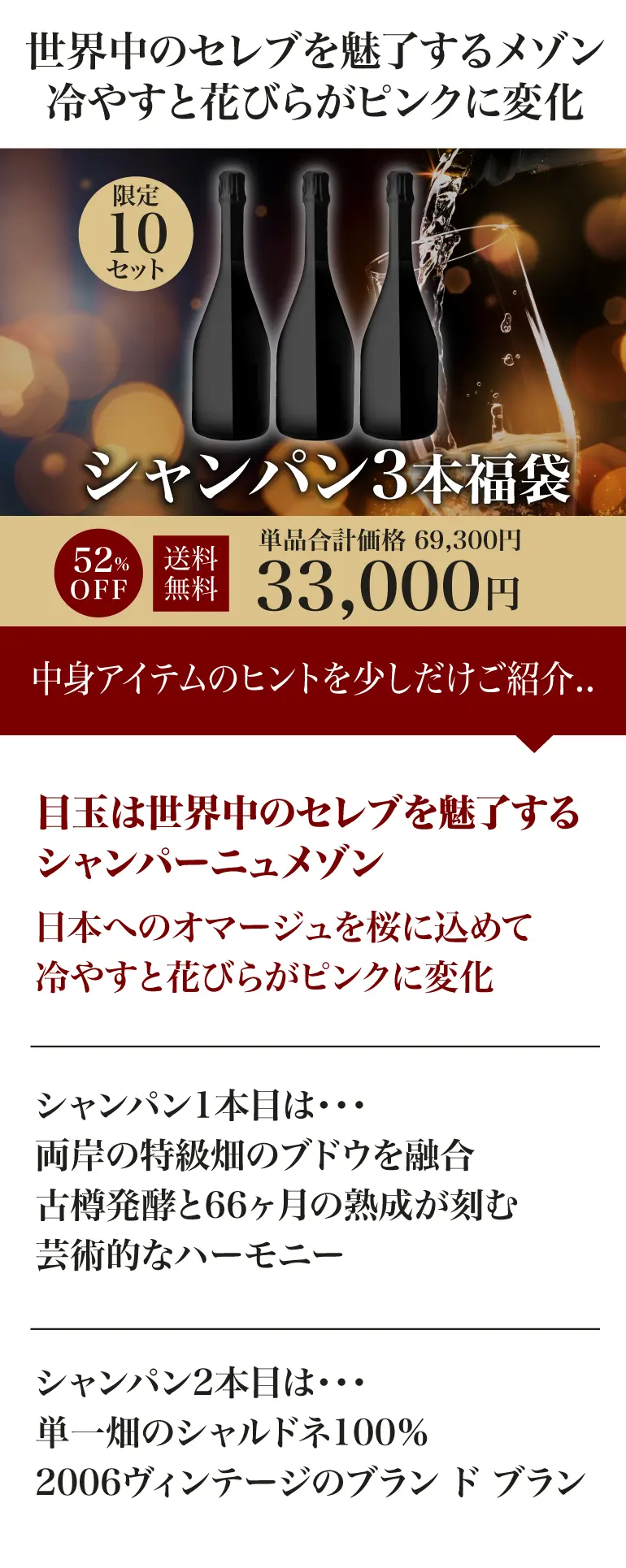 世界中のセレブを魅了するメゾン 冷やすと花びらがピンクに変化 泡3本福袋