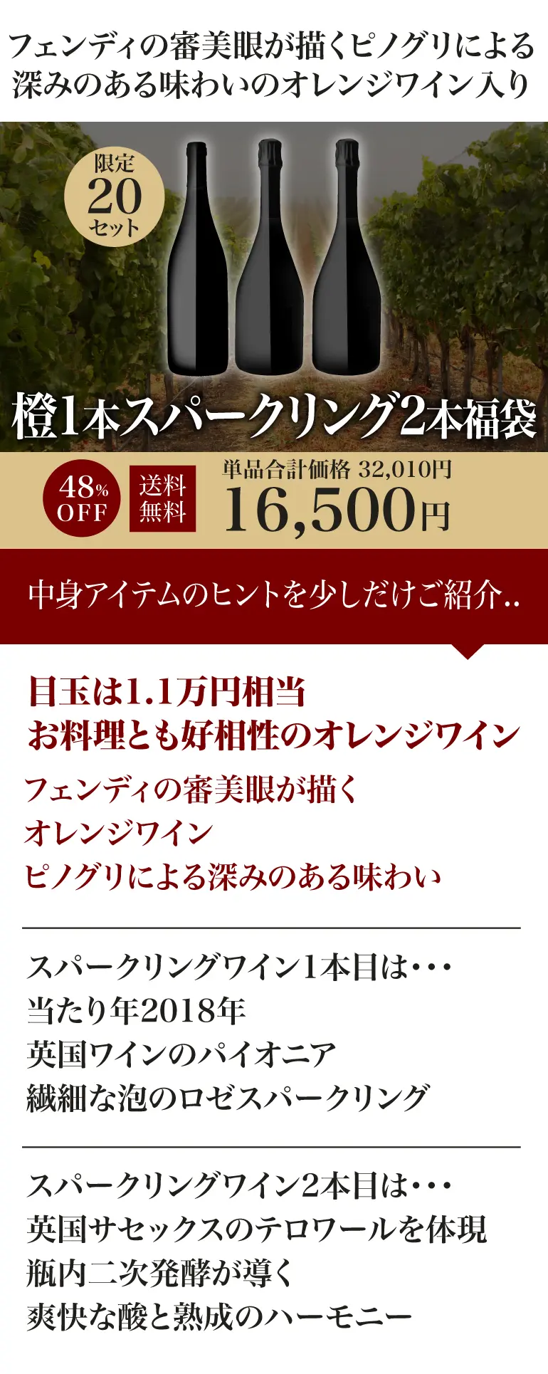 橙1本スパークリング2本計3本 1.5万円(税別)福袋