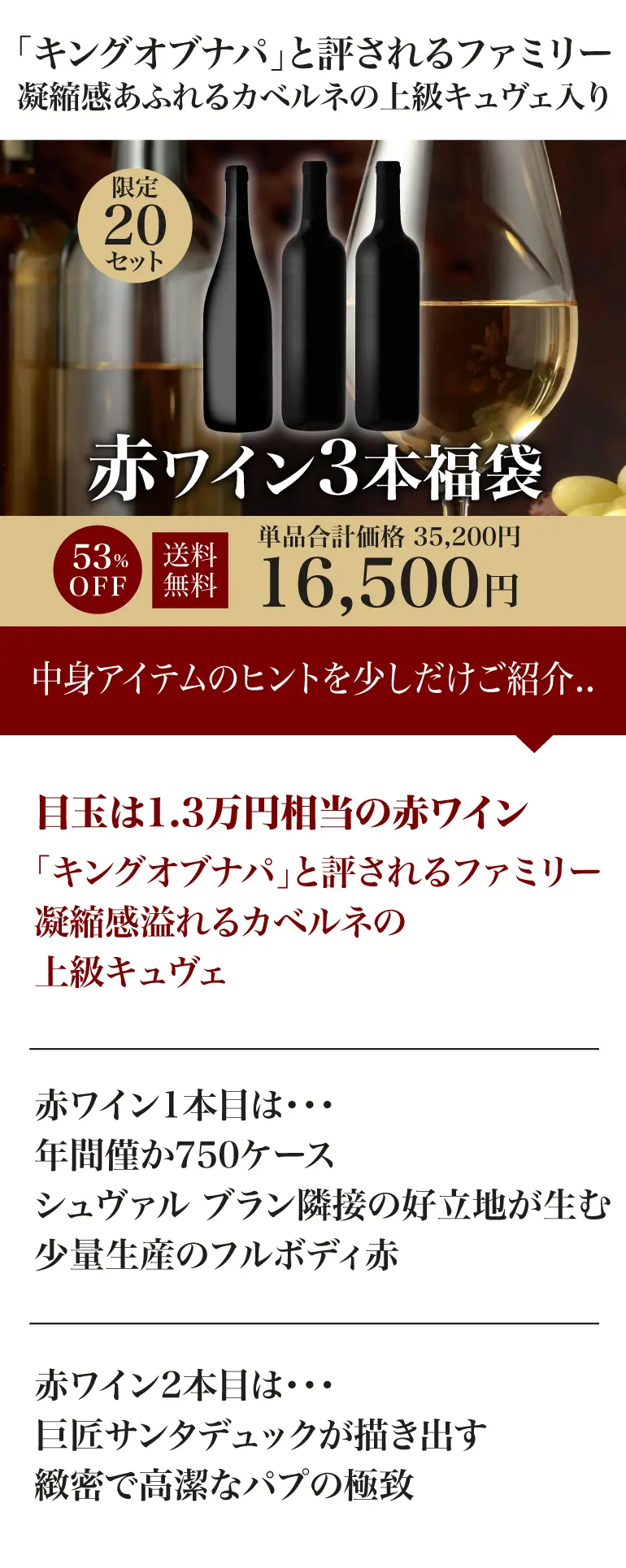 凝縮感溢れる贅沢なカベルネの赤ワイン入り 赤3本福袋