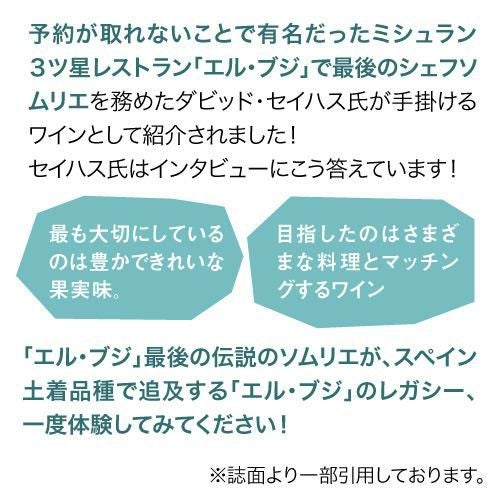 他の画像を見る 宅配便(冷蔵可) 三つ星レストランエルブジの元ソムリエが手掛けるスペインワイン イキガイ マグナム ガッジーナ デ ピエル 1500mlスペイン ペネデス チャレッロ 白ワイン ¥ 6,600 税込 お気に入りに登録する