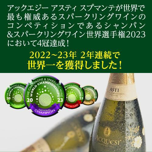 他の画像を見る 宅配便(冷蔵可) 2年連続スパークリングアロマティックワイン世界一! アックエジー アスティ スプマンテ クヴァージュ 750mlイタリア ピエモンテ スパークリングワイン ¥ 2,750 税込 お気に入りに登録する