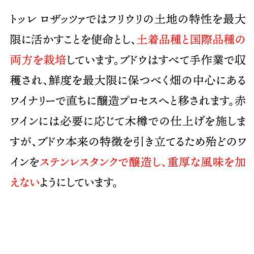 他の画像を見る 宅配便(冷蔵可) 小岩(グラーヴェ)の土壌で育つブドウを使用したフリウリ ピノ ネーロ フリウリ グラーヴェ [2023] トッレ ロザッツァ 750mlワイン 赤ワイン 赤 ¥ 2,970 税込 お気に入りに登録する