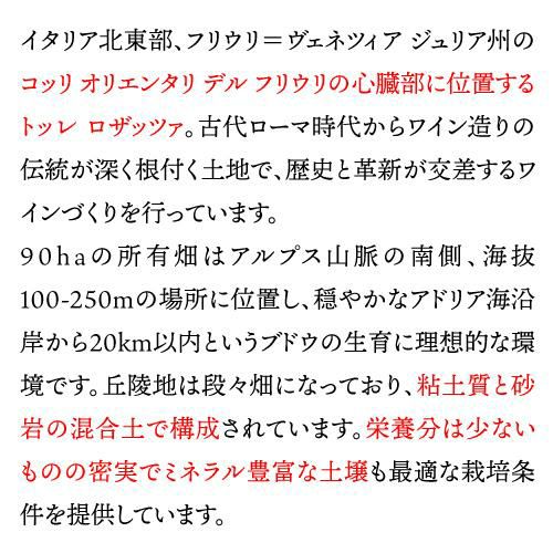 他の画像を見る 宅配便(冷蔵可) 小岩(グラーヴェ)の土壌で育つブドウを使用したフリウリ シャルドネ フリウリ グラーヴェ [2023] トッレ ロザッツァ 750mlワイン 白ワイン 白 ¥ 2,970 税込 お気に入りに登録する