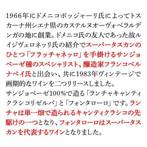 他の画像を見る 宅配便(冷蔵可) フェルシナの象徴!1983年から続くスーパータスカン フォンタローロ [2020] IGT トスカーナ フェルシナ 750ml イタリア トスカーナ 赤ワイン ¥ 15,400 税込 お気に入りに登録する