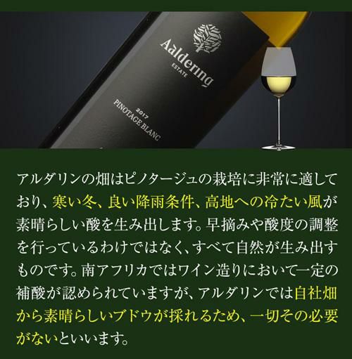 他の画像を見る 宅配便(冷蔵可) 珍しいブラン・ド・ノワールの南ア白ワイン! アルダリン ピノタージュ ブラン [2024] 750ml 南アフリカ ステレンボッシュ 白ワイン ¥ 5,280 税込 お気に入りに登録する 在庫切れ