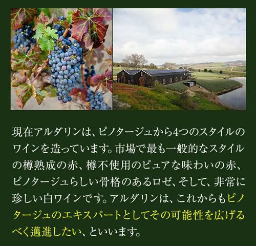 他の画像を見る 宅配便(冷蔵可) これぞ南アのピノタージュ!SAインデックス プラチナム賞 アルダリン ピノタージュ [2022] 750ml南アフリカ ステレンボッシュ 赤ワイン ¥ 5,280 税込 お気に入りに登録する