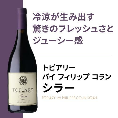他の画像を見る 宅配便(冷蔵可) ブルゴーニュの著名生産者フィリップ・コランが手掛ける赤 トピアリー バイ フィリップ コラン シラー [2020] 750ml南アフリカ 西ケープ 赤ワイン ¥ 3,300 税込 お気に入りに登録する