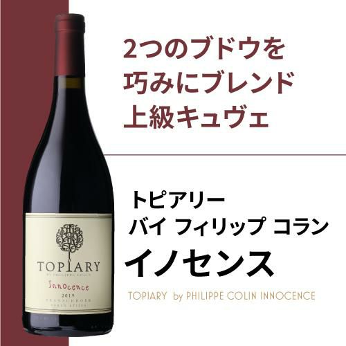 他の画像を見る 宅配便(冷蔵可) ブルゴーニュの著名生産者フィリップ・コランが手掛ける赤 トピアリー バイ フィリップ コラン イノセンス [2019] 750ml南アフリカ 西ケープ カベルネソーヴィニヨン シラー 赤ワイン ¥ 3,960 税込 お気に入りに登録する