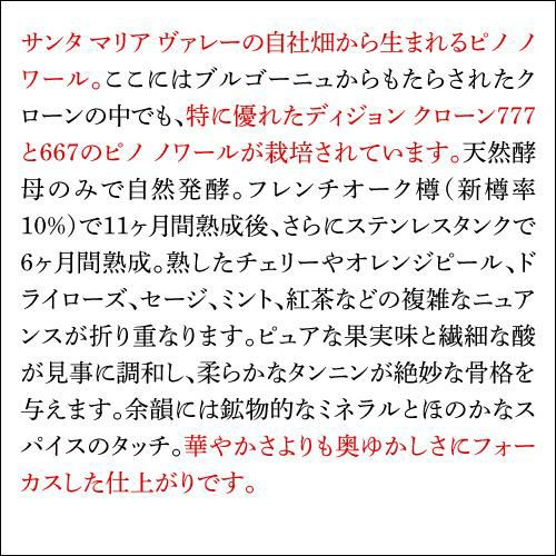 他の画像を見る 宅配便(冷蔵可) サンタ・リタの名畑が描く、繊細さと艶やかさのハーモニー サンフォード&ベネディクト ピノ ノワール [2021] プレスキール 750ml アメリカ サンタ バーバラ赤ワイン ¥ 14,850 税込 お気に入りに登録する