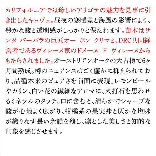 他の画像を見る 宅配便(冷蔵可) エキゾチックな甘い香りを纏いながら続く長い余韻 プレスキール ヴィンヤード アリゴテ [2023] プレスキール 750ml アメリカ サンタ バーバラ白ワイン ¥ 7,700 税込 お気に入りに登録する