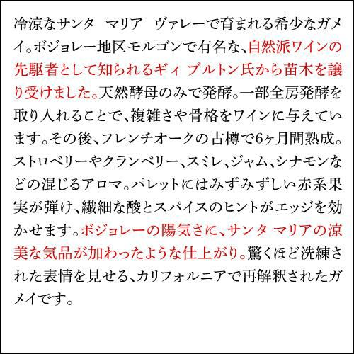 他の画像を見る 宅配便(冷蔵可) フレッシュな果実味と絶妙な甘酸っぱさのハーモニー プレスキール ヴィンヤード ガメイ [2024] プレスキール 750ml アメリカ サンタ バーバラ赤ワイン ¥ 7,150 税込 お気に入りに登録する