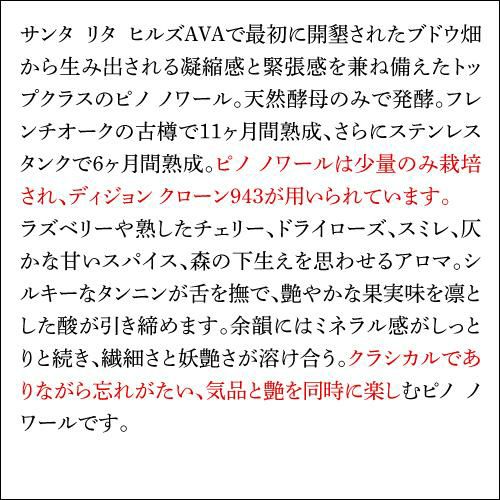 他の画像を見る 宅配便(冷蔵可) サンタリタヒルズにて最初にピノ を栽培したワイナリー ピノ ノワール サンタ リタ ヒルズ [2021] or [2022] サンフォード 750mlアメリカ カリフォルニア 赤ワイン 辛口 ¥ 8,800 税込 お気に入りに登録する