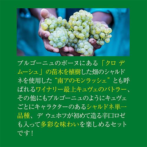 他の画像を見る 宅配便(冷蔵可) 単品価格合計34,870円(税込)→19,800円(税込) 【1本あたり3,960円 送料無料】デ ウェホフ 5本セット 第5弾南アフリカ 白ワイン ワインセット ¥ 19,800 税込 お気に入りに登録する