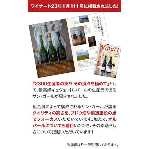 他の画像を見る 宅配便(冷蔵可) 2023年1月号 ワイナート111号掲載 サン ガール オルパールブラン ド ブラン グランクリュ [1998]正規品 750ml箱あり フランス シャンパーニュ シャンパン【お一人様1本まで】 ¥ 49,500 税込 お気に入りに登録する 在庫切れ