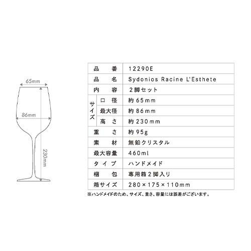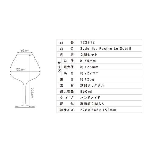 他の画像を見る 宅配便(冷蔵可) 優美な曲線を描くフォルムにより繊細な香りや美しさが豊かに表れる。 【シドニオス】限定特価&ポイント3倍シドニオス ラシーヌ ル スプティル [2脚入り] 350mlワイングラス ¥ 19,800 税込 お気に入りに登録する