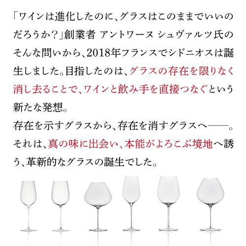 他の画像を見る 宅配便(冷蔵可) 香りを捉えたあとの複雑さや余韻を表現。リッチネスを愉しむために。 【シドニオス】限定特価&ポイント3倍シドニオス テロワール ランプラント [2脚入り] 350mlワイングラス ¥ 23,760 税込 お気に入りに登録する