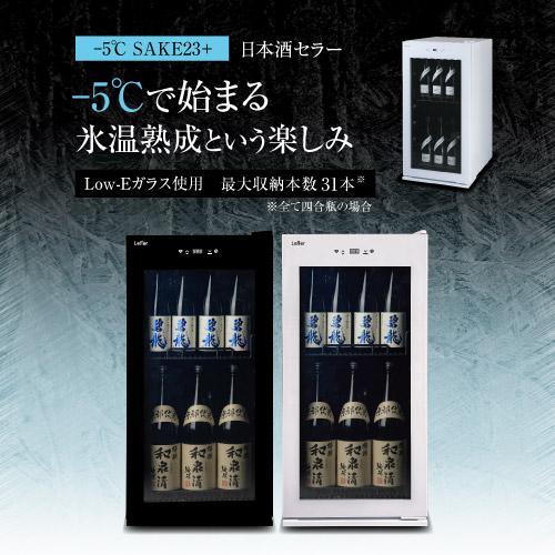 -5℃で氷温保管できる 日本酒セラー -5℃ SAKE23+(W) 23本収納 ホワイト ルフィエール 1年保証 家庭用 業務用 大容量 送料設置料無料 コンプレッサー 118L 一升瓶 四合瓶 ワインセラー