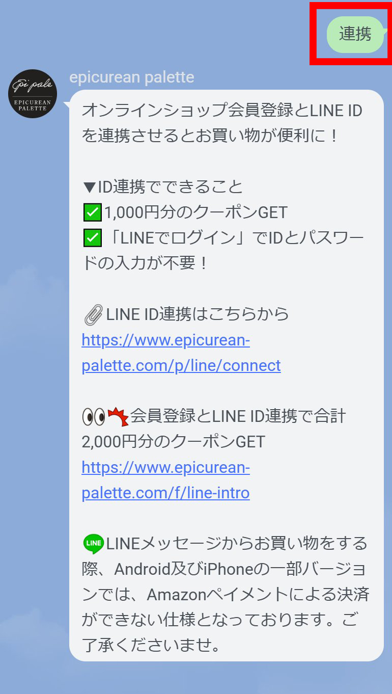 ①か②のどちらかでエピキュリアン・パレットを友だち追加できます。