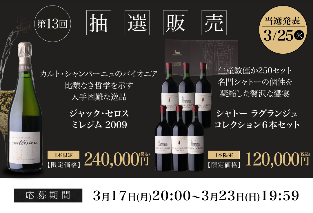近代シャンパーニュの哲学に浸る入手困難な希少キュヴェとボルドーの贅沢な饗宴を味わうセット。是非この機会に。