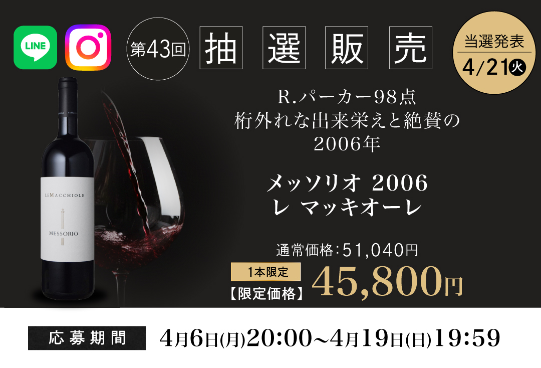 イタリア メルローの頂点、ボルゲリの至宝メッソリオ。桁外れな出来栄えと絶賛の2006年はR.パーカー98点を獲得、20年の歳月を経て、今まさに円熟の極みに達した「真の頂点」を味わえる稀有な1本です。
