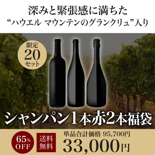 他の画像を見る 緊張感に満ちた"ハウエルマウンテンのグランクリュ"入り 赤2本泡1本福袋 送料無料 95,700円(税込)相当が入って33,000円(税込)! 赤2本シャンパン1本計3本 3万円(税別)福袋 2026 2026年 赤ワイン シャンパーニュ 福袋 ワインセット 宅配便(冷蔵可) ¥ 33,000 税込 お気に入りに登録する 販売期間 2026/04/15 18:00 〜 2026/04/19 23:59