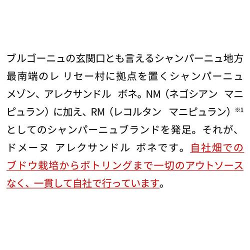 他の画像を見る J.サックリング94点、彫り深く刻まれるミネラルの輪郭 ドメーヌ アレクサンドル ボネ アルディ ブラン ド ノワール [2019] 正規品 箱なし RM 750ml フランス シャンパーニュ シャンパン 宅配便(冷蔵可) ¥ 33,000 税込 お気に入りに登録する